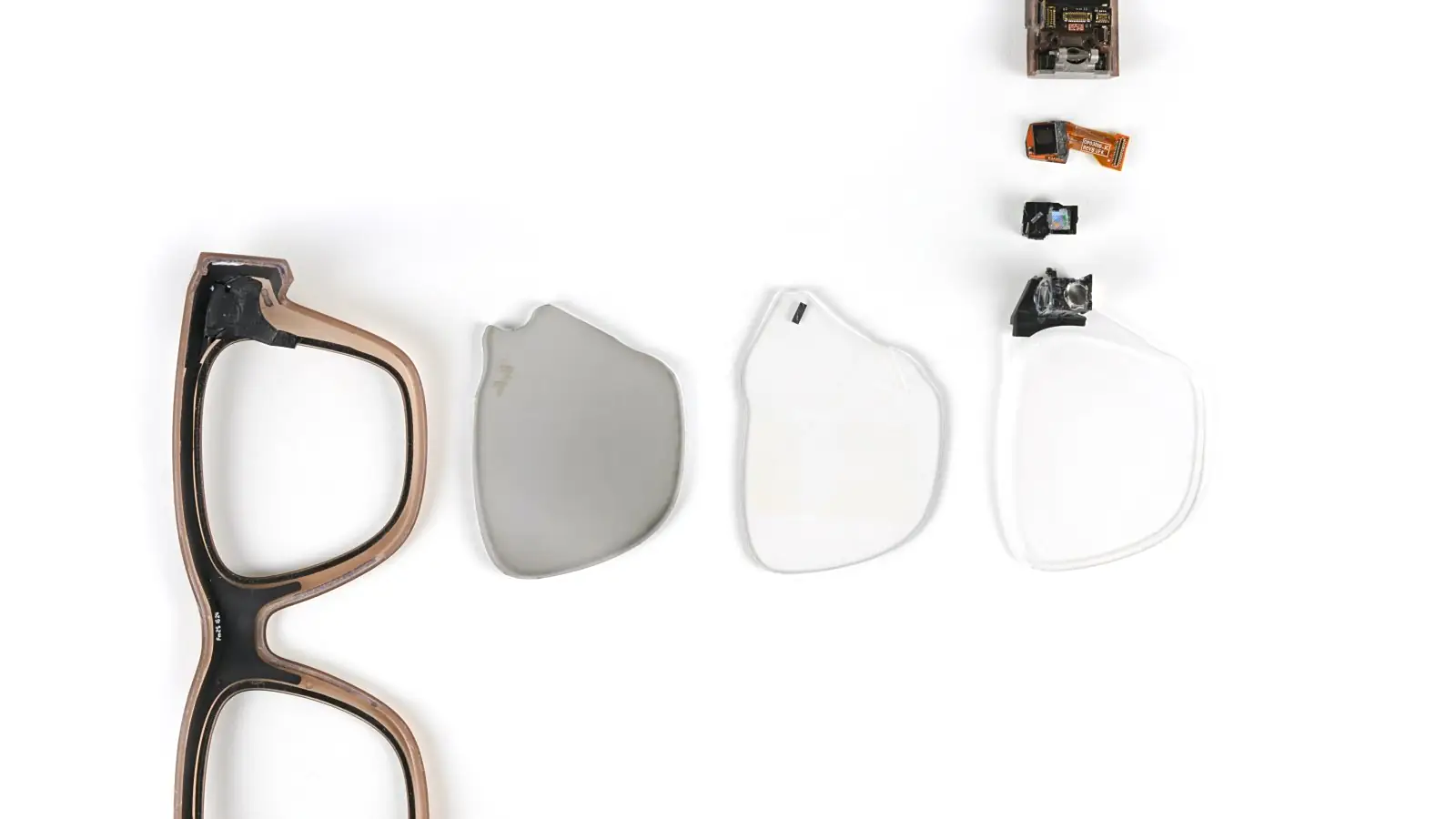 波导两侧粘接着推拉式镜片组,其中一片集成了 Transitions 自动调光功能。这类镜片会随时间推移逐渐失效 —— 变暗速度变慢,遮光效果减弱。即便电池仍能维持性能,几年后这些眼镜作为太阳镜的功能也将大打折扣。